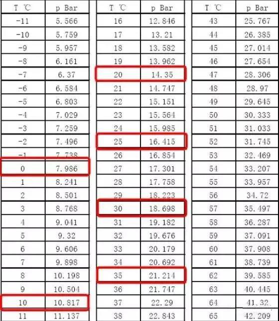在制冷劑冷凝過程中,如果冷凝壓力一定,冷凝溫度也是一定的。它們之間的關系是一一對應的。R410A為例,它們的關系是: