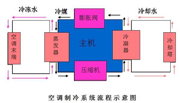 載冷劑是一種中間物質,如常用的空調冷凍水,其在蒸發器內被冷卻降溫,然后遠距離輸送,來冷卻需要被冷卻的物體。