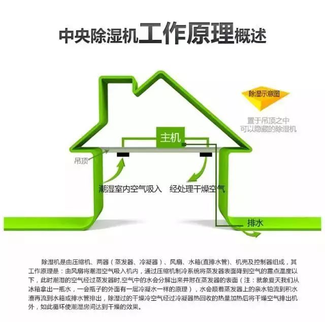 解決因除濕機重量過大,不易在天花內安裝的問題,從而可輕松安裝在天花板上方,彌補嵌入式空調不能除濕的缺點。