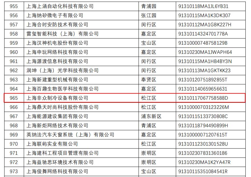 公告——熱烈祝賀上海非眾制冷設備有限公司再次認定高新技術企業?。?!