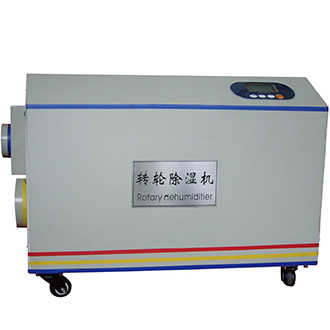 轉輪在除濕機內部分由密封板將表面分成為270度的除濕處理區域和90度的再生區域,除濕轉輪以8~10/小時的速度緩慢旋轉,以保證整個除濕為一個連續的過程。