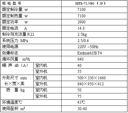 BKFR-71/GW2柜式防爆空調技術參數