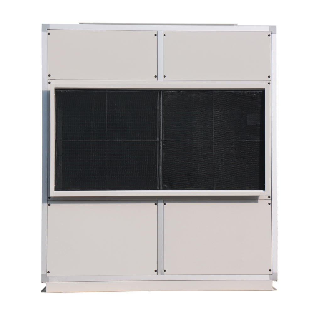 6. 一機多用,溫度控制范圍廣(5~32℃),全年運行效率高。留有新風換氣機接口,用戶可配置新風換氣機,在過渡季節和冬季,機組可自動將室外的低溫空氣引入室內,以達到換氣和降溫的目的,同時也可以減少主機的運行時間,以達到節能的目的。該特點特別適合于過渡季節需要換氣、冬季需要降溫的場合。